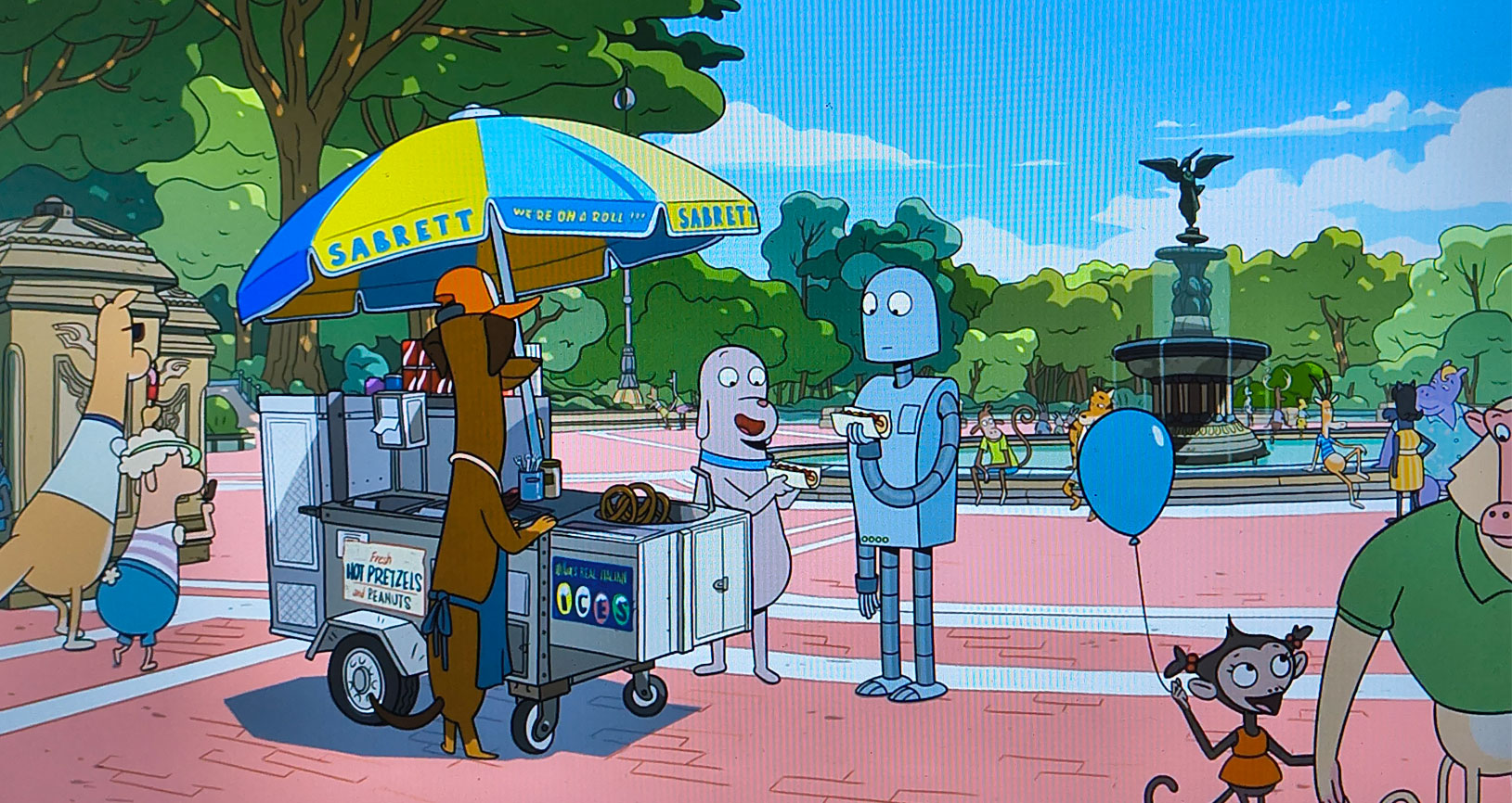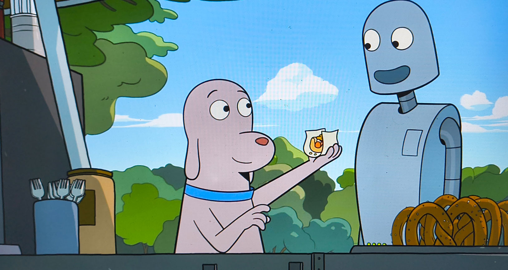 Disfrutando juntos de un hot dog